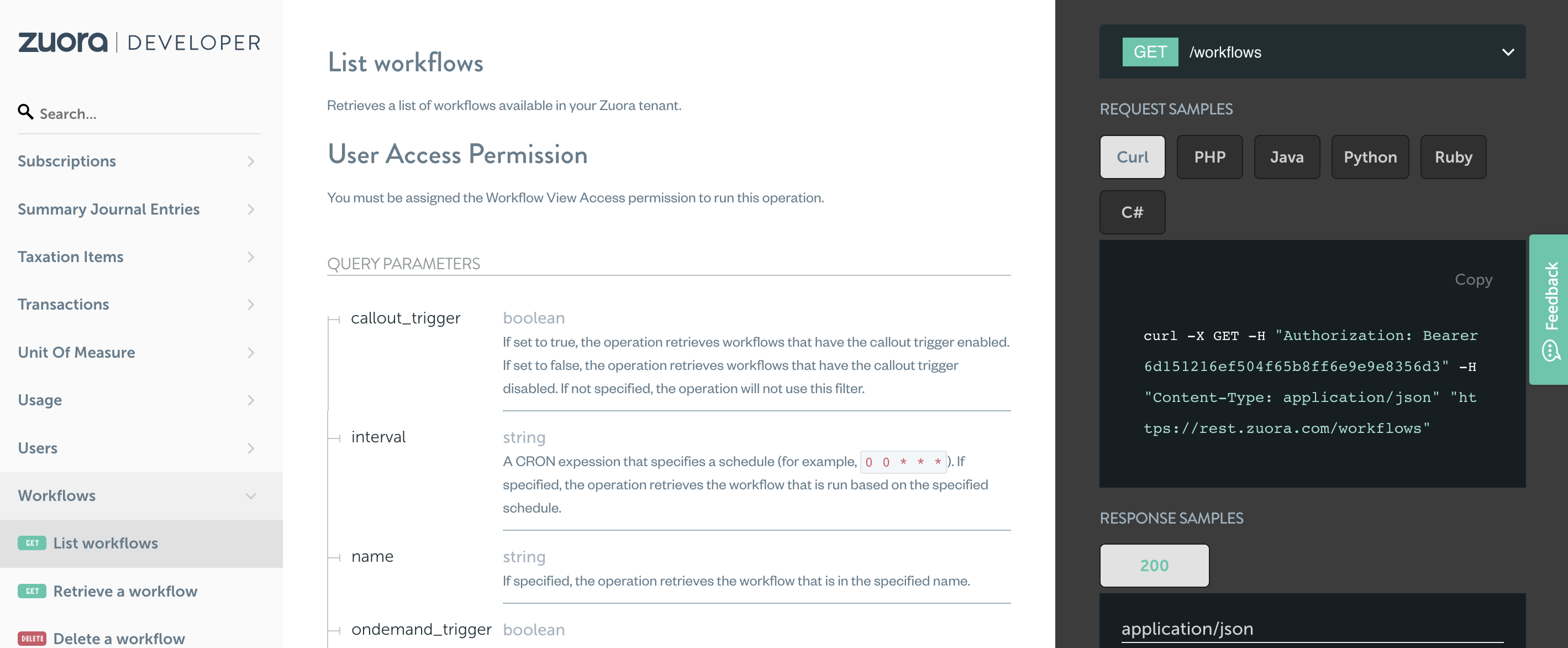 - Follow the instructions above to read the Zuora API documentation
